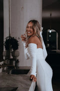 Elegant Mermaid Wedding Dresses Scoop Neck Long Brides Desss for Women Button Sweep Train Generous Bridals Gowns