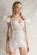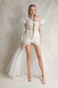 Lace Short Wedding Party Dresses Sweetheart Two Pieces Bride Dresses with Detachable Train Women's Prom Gowns Bridal Dress