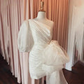 Short Mermaid Wedding Party Dresses One Shoulder Pleat Bridals Gowns with Bow Evening Gowns vestido de noiva casamento