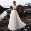 Two pieces Beach Wedding Gowns Elegant Bridal Dresses Boho Champagne Cap Sleeve illusion vestido de novia Vintage