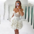 White 3D Flowers Wedding Party Dresses Off Shoulder Lace Mini Bride Prom Gowns for Womens A-Line Short Bridemaids Dress