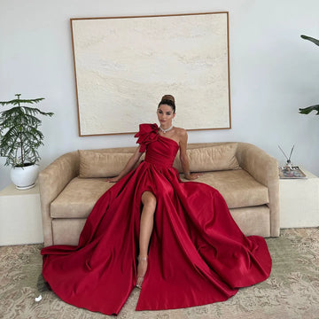 Burgundy One Shoulder فساتين سهره فاخره Elegant Sleeveless Satin Prom Dresses Floor-Length Court Train Vestidos De Noche
