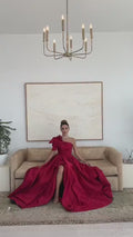 Burgundy One Shoulder فساتين سهره فاخره Elegant Sleeveless Satin Prom Dresses Floor-Length Court Train Vestidos De Noche as pic