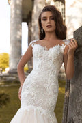 Cap Sleeve Lace Wedding Dresses Mermaid Appliques Sequins Marriage Bridal Gowns Court Train Plus Size illusion WHITE