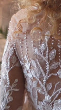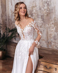 Elegant A-Line Wedding Dress Women Open Back V-Neck Lace Long Sleeve Side Split Tulle Bridal Gown Sweep Train Vestidos De Noiva