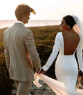 Elegant Long Sleeve Wedding Dress Mermaid Sexy Boat Neck Wedding Gown Sweep Train Backless Buttons Vestido De Noiva