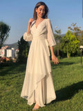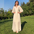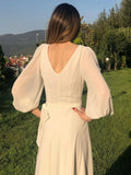 Elegant Simple V-neck Wedding Dress Sashes Chiffon Backless Three Quarter Sleeve Floor-Length Bridal Gown Custom Made