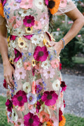 Flower Lace Embroidery Prom Dress Knee Lenght Vestidos De Noche With Pocket 3D Flower فساتين مناسبة رسمية Beige