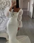 Generous Mermaid Wedding Dresses Square Collar Long Puff Sleeves Brides Gowns Sweep Train Evening Dresses for Women