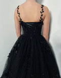 Handmade Lace Embroid Prom Dress Gothic Party Dresses 3D Flower Evening Dress Black Tulle Sweep Train فستان سهرة Black