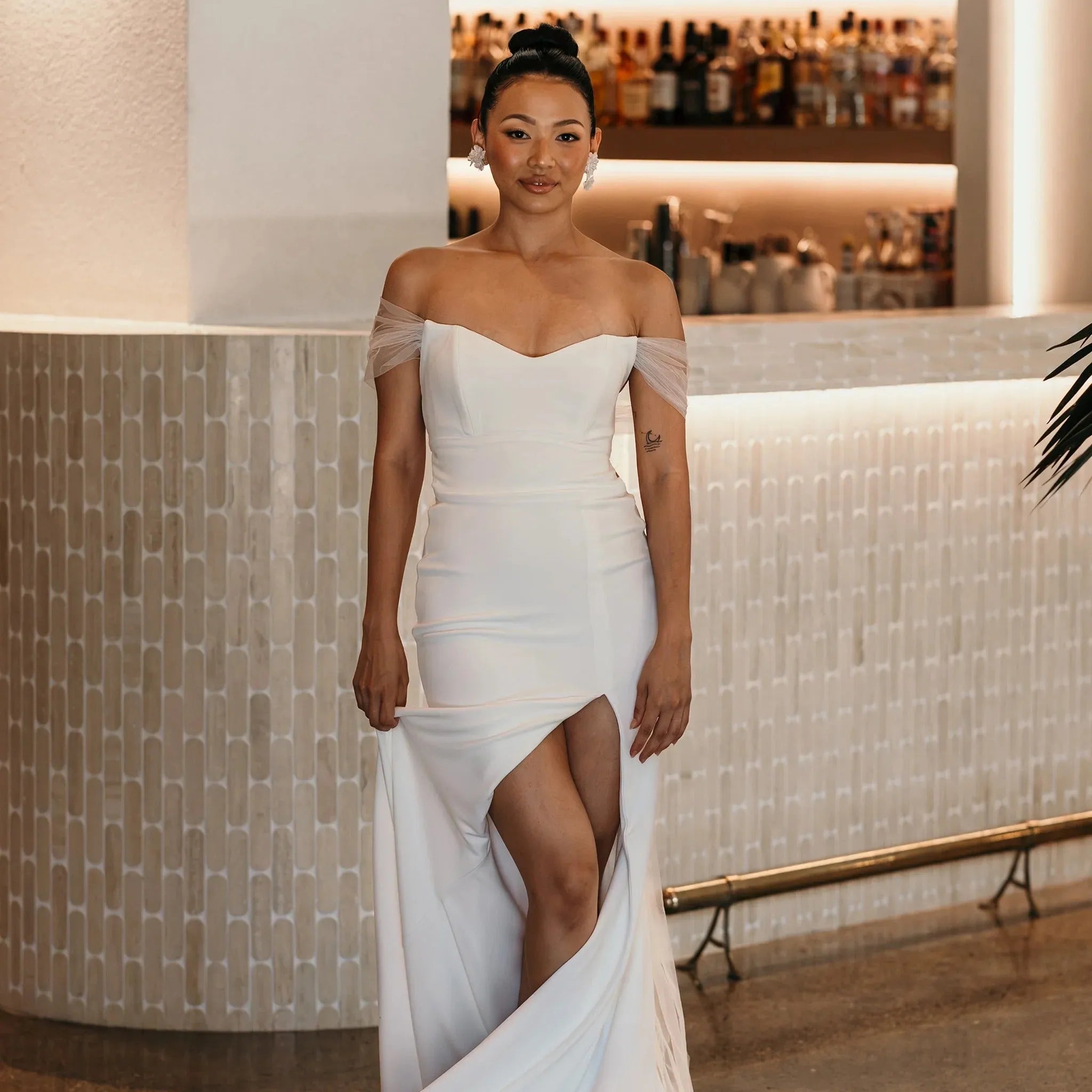 Romantic Bow Back with Extended Train Tails Wedding Dress Satin Bridal Gown Skirt Vestido De Novia Bow Court Train Dress