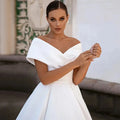 Jiayigong Gorgeous Ball Gown Wedding Dresses Off The Shoulder V Neck Simple Satin Sweep Train Corset Bridal Dress