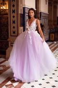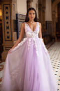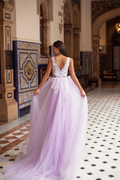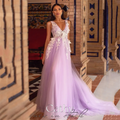 Lavender Vestidos De Fiesta Elegantes Para Mujer Elegant Lace Embroid Prom Dresses V-neck Vestidos De Noche