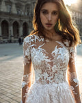 Light Pink Beach Boho Wedding Dresses with Long Sleeve Lace Appliques Bridal Gown Vintage illusion Floor Length Party Gown