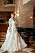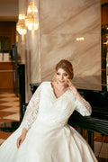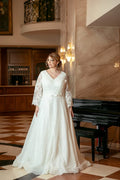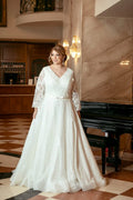 Muslim Wedding Dress | Plus Size Wedding Dress Glitters Bling Sparkly Ball Gown 3/4 Three Quarter Sleeves V Neck Bridal Gown Formal Women Muslim Ivory