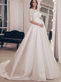 Pregnant Wedding Dress Plus Size Off Shoulder Half Sleeves Satin Lace Pearls Crystal A Line Bridal Gown Women Elegant Bride