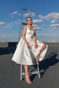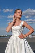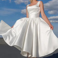 Short Wedding Dress Simple Satin Spaghetti Strap A-Line Bridal Gowns White Knee Length Robe De Mariee Sleeveless Gorgeous Beach