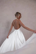 SOL Simple Detachable Sweep Train Halter Sleeveless Wedding Dress BOHO Backless Mermaid Bridal Gowns Sexy Custom Made