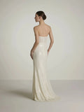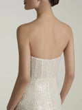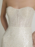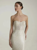 Strapless in Glitter Wedding Dress Mermaid Modern Princess White Satin Vestido De Novia Bow Satin Court Train Mermaid Sleeves Bridal Gowns