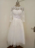 Vestido De Noiva Curto Vintage Ivory Tea Length Long Sleeve Wedding Dress Lace Wedding Gowns Scoop Short Bridal Dresses